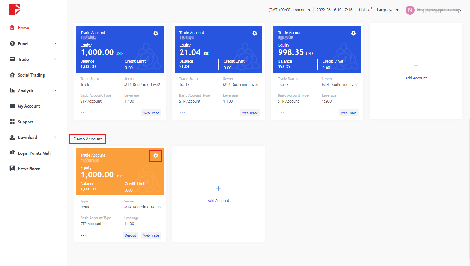 1. يمكنك تسجيل الدخول إلى مركز المستخدم ، والعثور على الحساب الذي نسيت كلمة المرور الخاصة به ، ثم النقر فوق الترس الموجود في الزاوية اليمنى العليا لإعادة تعيين كلمة المرور.