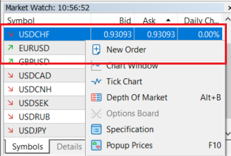 2. انقر بزر الماوس الأيمن فوق منتج تجاري في [نوع التداول] من عرض أسعار السوق ، ثم انقر فوق [أمر جديد].