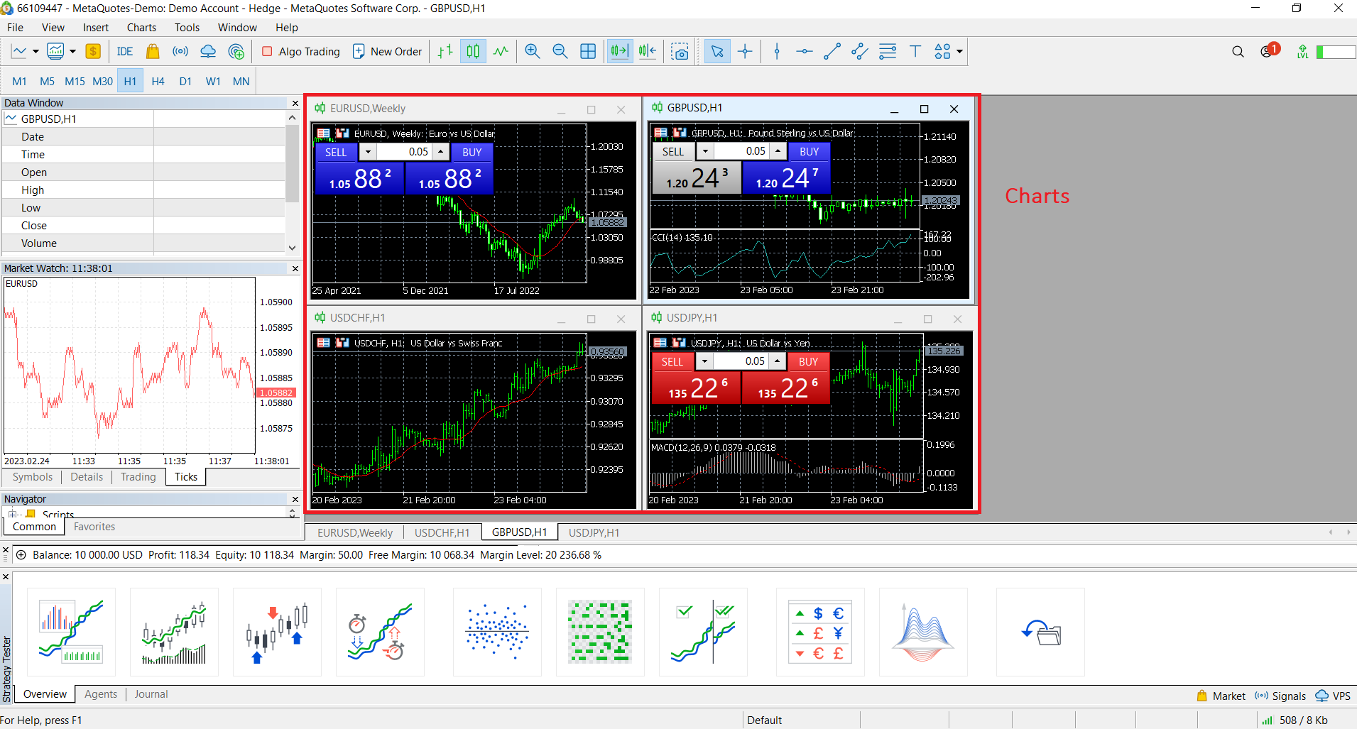 يمكن للمستخدمين التبديل بين حسابات التداول المختلفة ضمن [الحساب] في [التنقل] ، وتعيين المؤشرات ومعاملات EA.