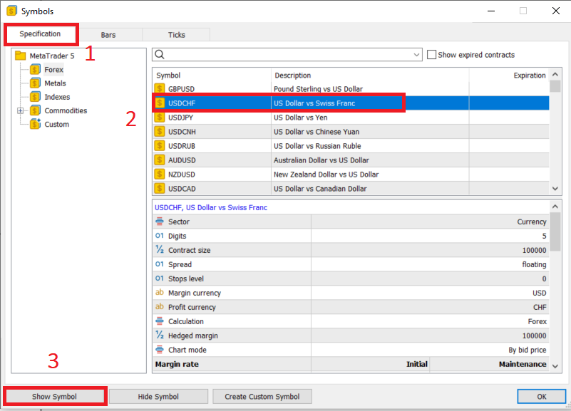 1. Add the code of the relevant trading symbol directly under the window of market quotation: