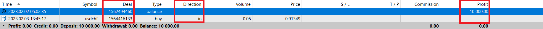 The opening and closing of an order are displayed separately according to in and out, in means opening a position, out means closing a position, and only the out closing order will display the profit and loss amount;