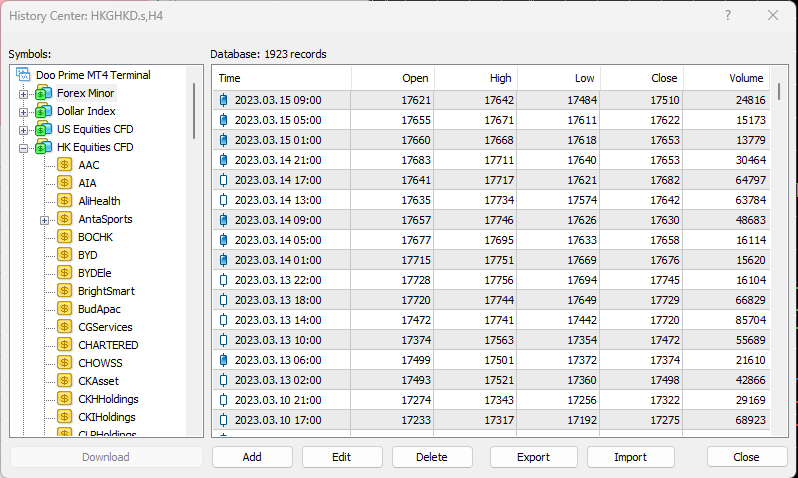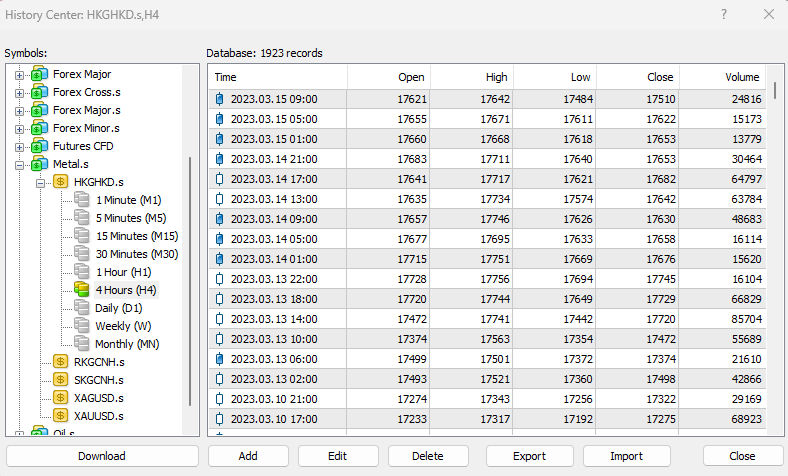 1. Please log in to MT4 and click "Historical Data Center" on the top menu bar.
