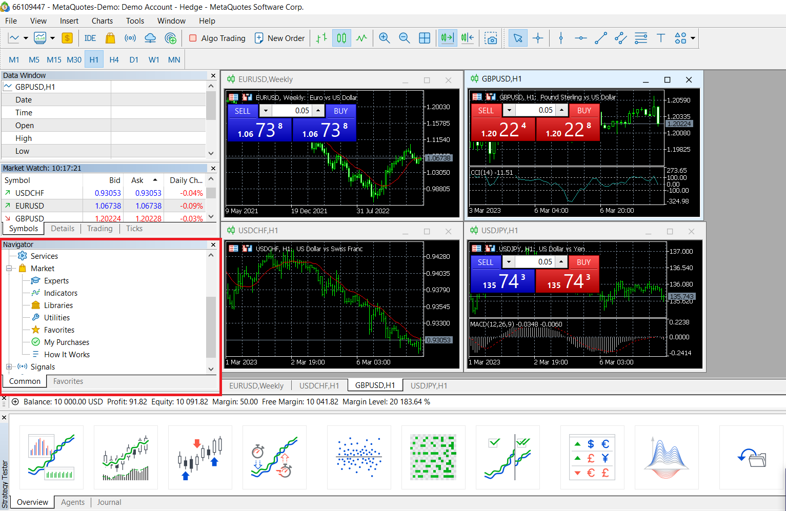 Users can switch between different trading accounts under [Account] in [Navigation], and set indicators and EA transactions.