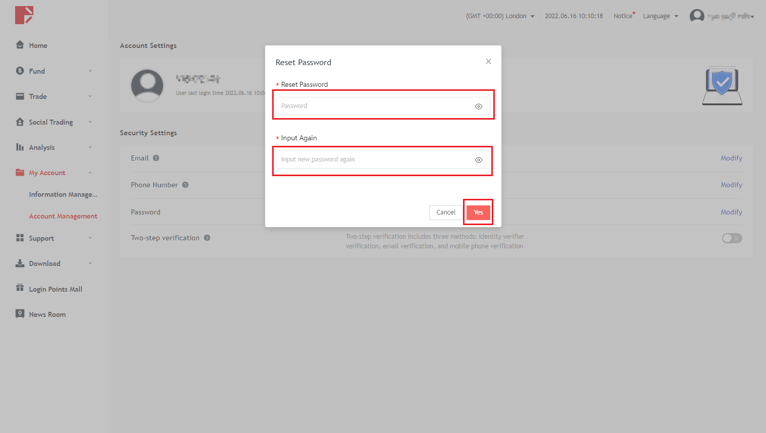 3. 비밀번호를 재설정하고 "확인"을 클릭하면 설정을 완료하기 위한 확인 이메일을 받게 됩니다.