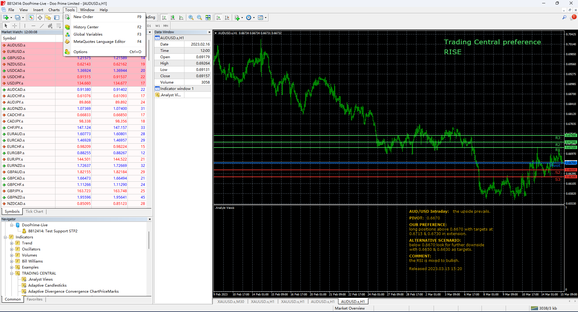 1. Faça login no MT4 e clique em "Centro de dados históricos" na barra de menu superior.