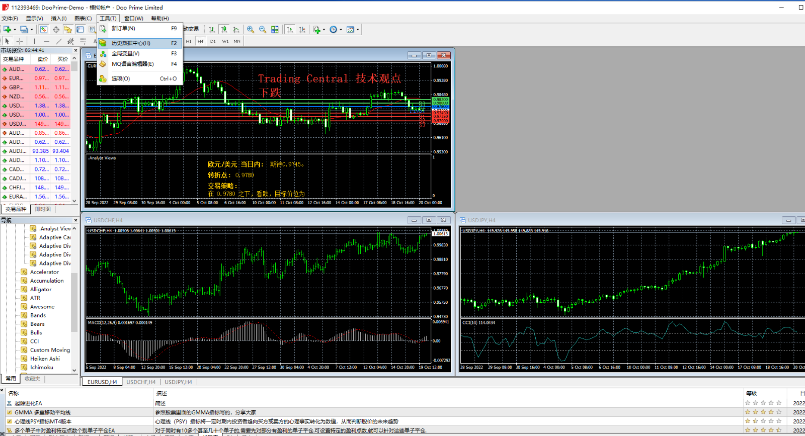 1. 請您登錄MT4 後在頂部菜單欄點擊「歷史數據中心」。