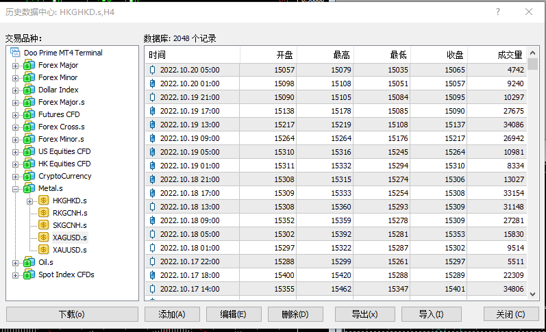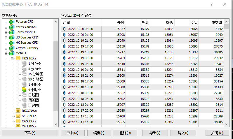 2. 在左側菜單欄中選擇具體交易品種後便可查看歷史數據。