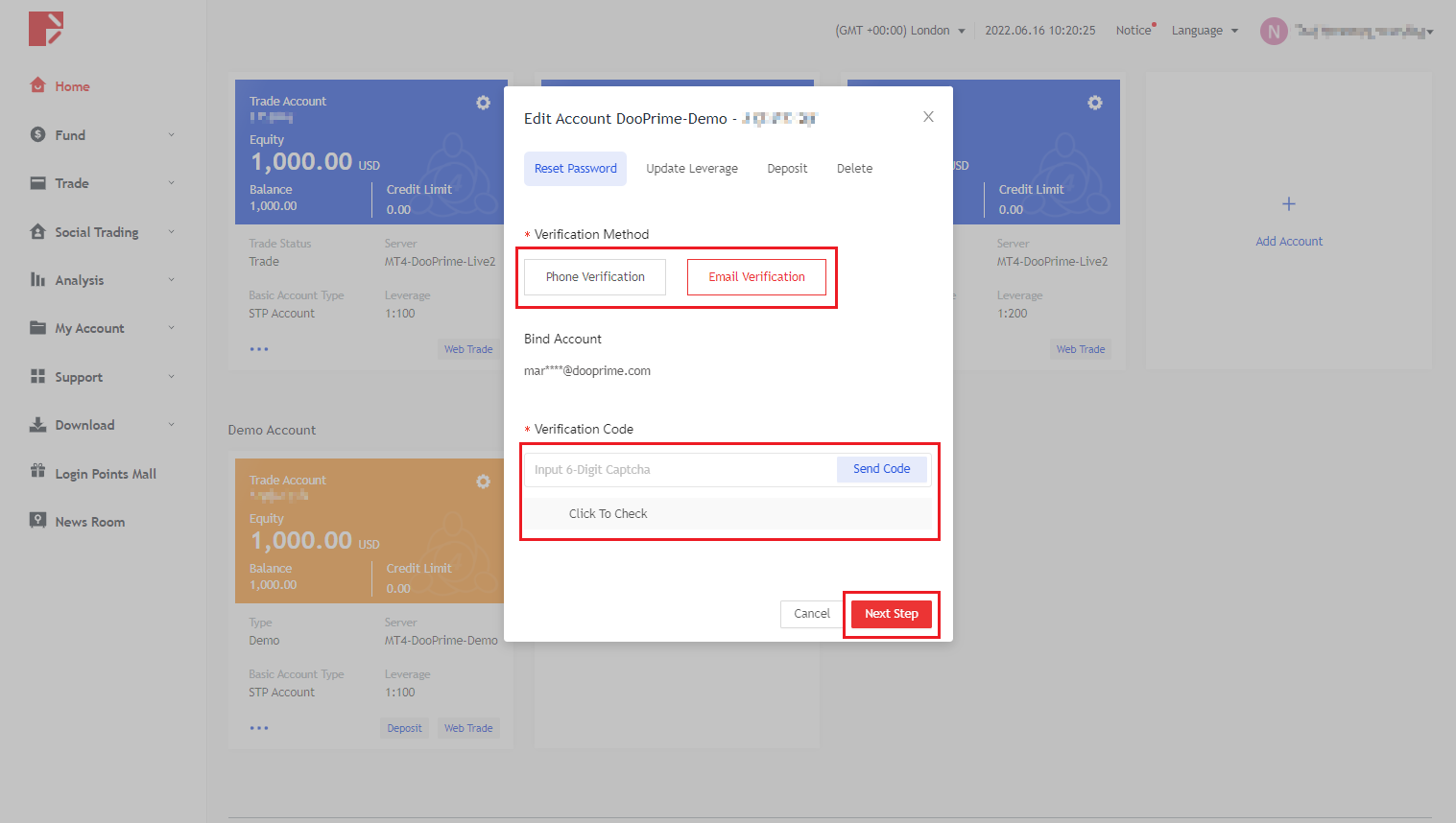 Tôi phải làm gì nếu quên mật khẩu tài khoản demo trong Trung tâm người dùng D Prime?